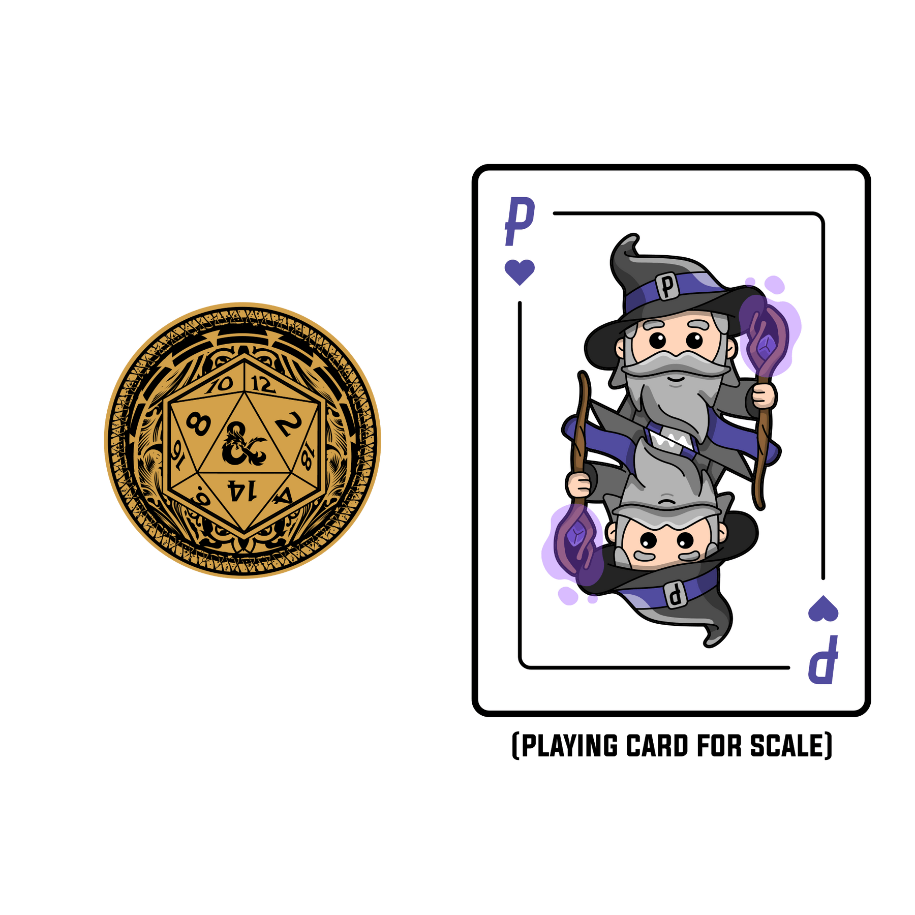 Step up your game with the Ornate Gold D20 Pin, the ultimate interactive dice roller for any Dungeons & Dragons fan! Whether you're rolling for initiative or making a clutch saving throw, this stunning pin doubles as a digital D20, bringing a whole new level of magic to your collection.