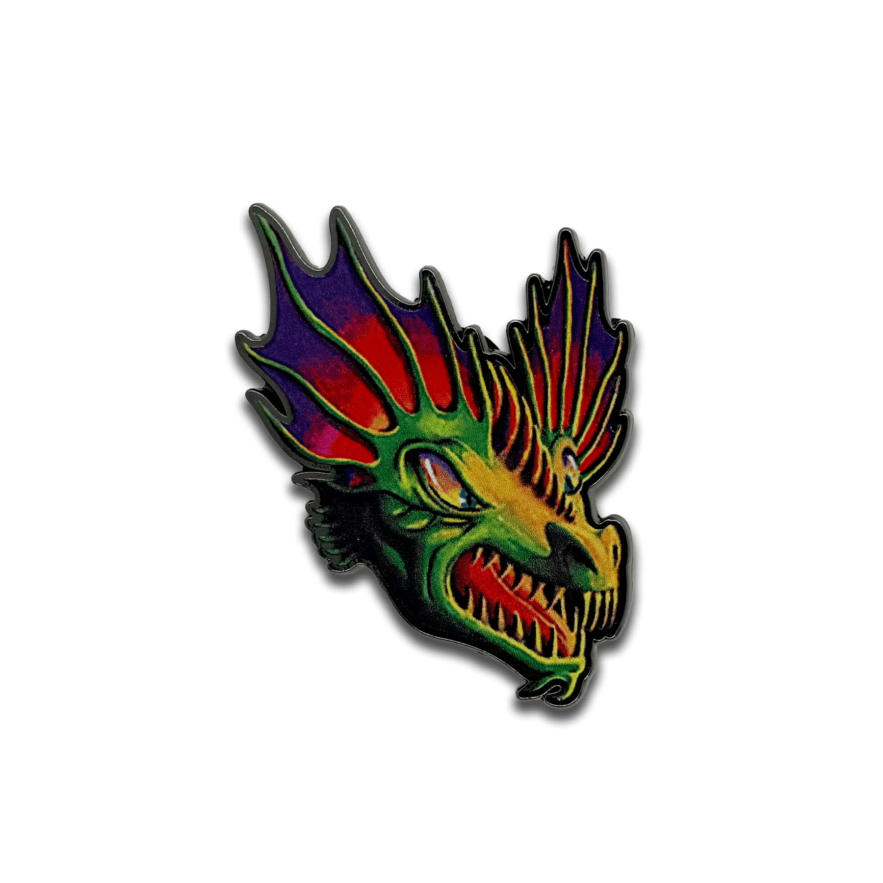 This retro dragon pin is based off some very classic D&D art. Scan the pin with the Pinfinity app to bring it to life and access a downloadable wallpaper.